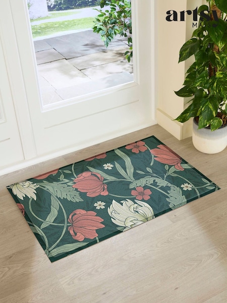 Artsy Mats Multi Red Flower William Morris Pattern Doormat