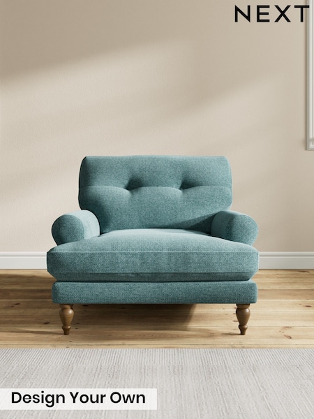 Chunky Chenille/Mid Teal Green Erin Buttoned Back Deep Relaxed Sit