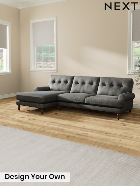 Tweedy Chenille/Dark Grey Erin Buttoned Back Deep Relaxed Sit