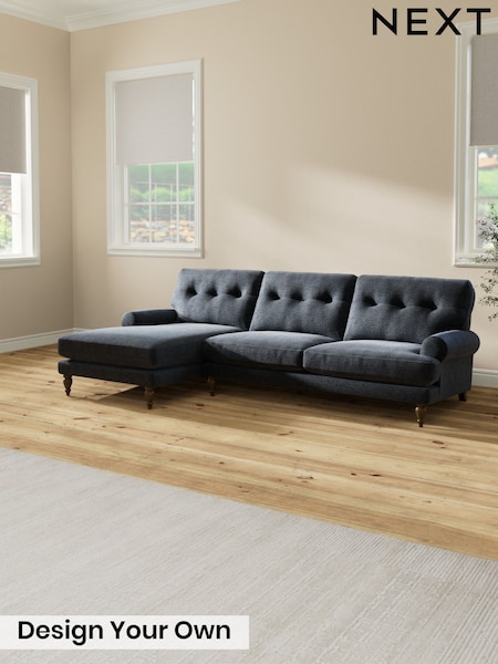 Boucle Chenille/Dark Slate Blue Erin Buttoned Back Deep Relaxed Sit