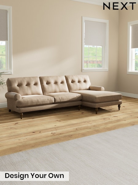 Luxe Chenille/Mid Camel Beige Erin Buttoned Back Deep Relaxed Sit