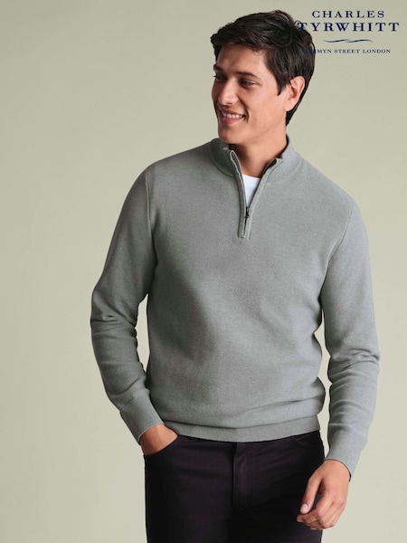 Charles Tyrwhitt Grey Honeycomb Cotton Zip Neck Jumper