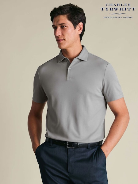 Charles Tyrwhitt Grey Shorts Sleeve Cotton Stretch Smart Pique Polo Shirt
