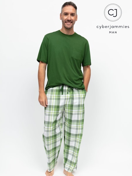 Cyberjammies Green Jersey Top & Checks Pyjamas Bottoms Set