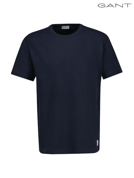 GANT Blue Textured Waffle Cotton Blend T-Shirt