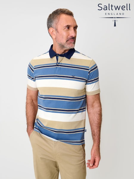 Saltwell Blue Stripe Cotton Short Sleeve Polo Shirt