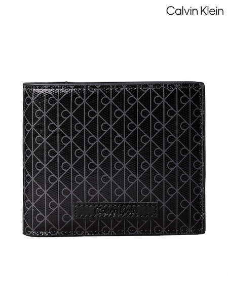 Calvin Klein Black Allover Monogram Logo Bifold Wallet with Coin Pouch