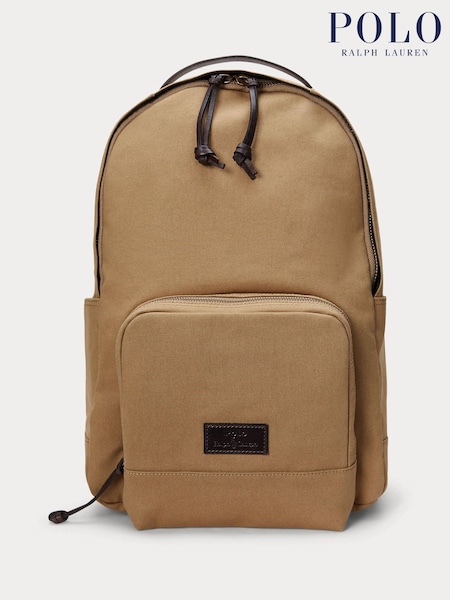 Polo Ralph Lauren Brown Leather-Trim Canvas Backpack