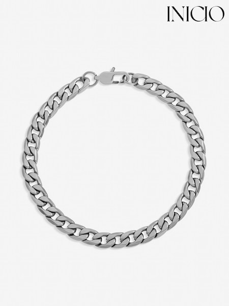 Inicio Silver Tone Steel Waterproof Curb Chain Bracelet