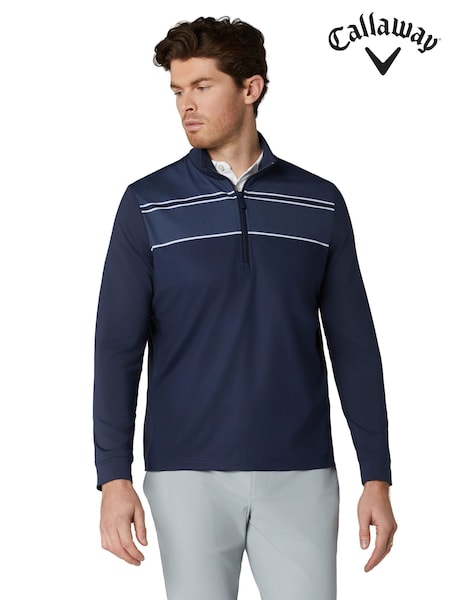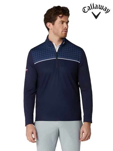 Callaway Golf Blue Blocked Printed Chev Textured Pullover Jumper