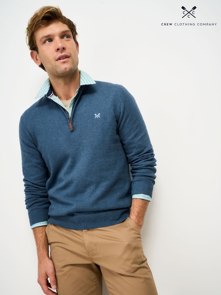 Crew Clothing Company Blue Cotton Half Zip Jumper