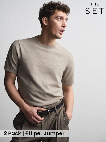 The Set 2 Pack Cotton Blend Crew Neck Short Sleeve Jumpers Pink/Grey