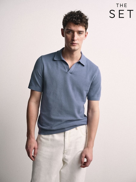 The Set 3 Pack Fine Gauge Cotton Blend Trophy Neck Short Sleeve Jumpers Navy/White