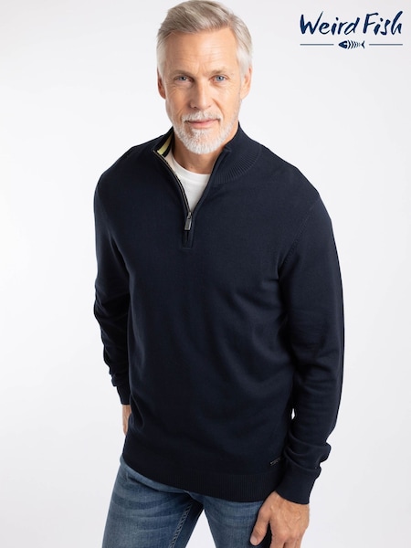 Weird Fish Blue Blaine Fine Knit 1/4 Zip Jumper