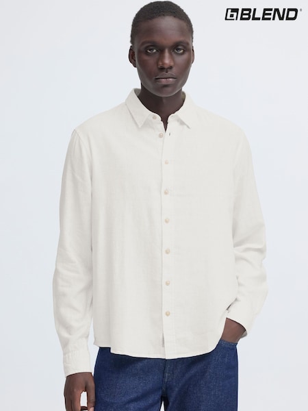 Blend White Bobby Long Sleeve Linen Blend Shirt