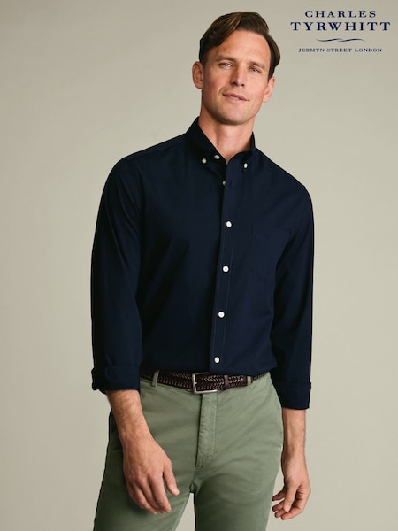 Charles Tyrwhitt Blue Slim Fit Plain Button-Down Stretch Washed Oxford Shirt