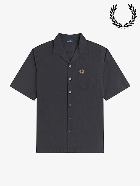 Fred Perry Grey Seersucker Revere Collar Shirt