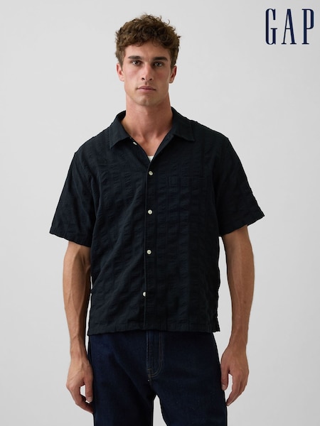 Gap Black Dobby Relaxed Straight-Hem Shirt