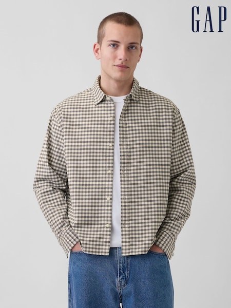 Gap Cream check Relaxed Straight-Hem Oxford Shirt