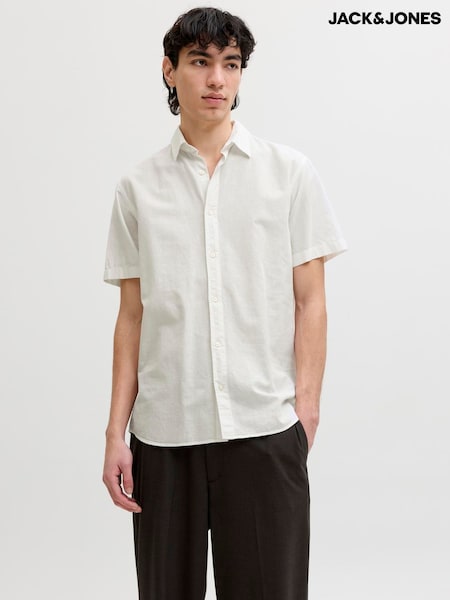 JACK & JONES White Linen Blend Short Sleeve Shirt