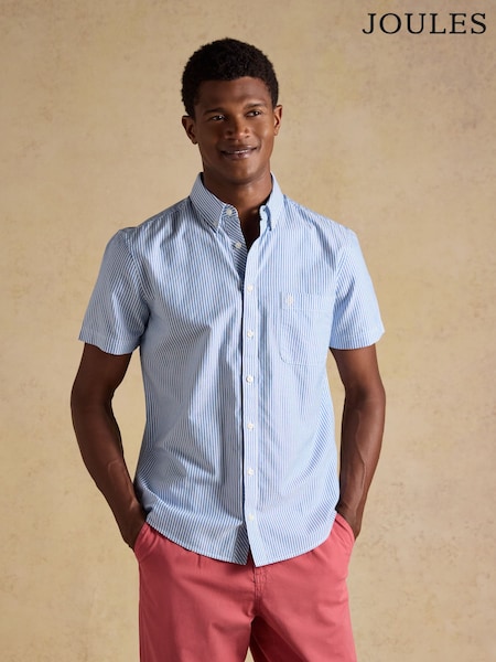 Joules Oxford Blue Stripe Short Sleeve Classic Fit Cotton Shirt