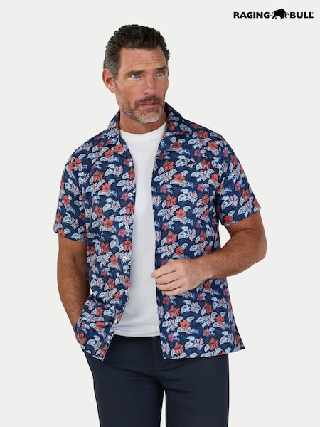 Raging Bull Blue Long Sleeve Floral Print 100% Cotton Poplin Shirt