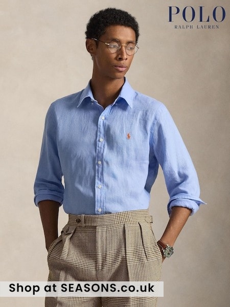 Polo Ralph Lauren Austin Blue Custom Fit Linen Shirt