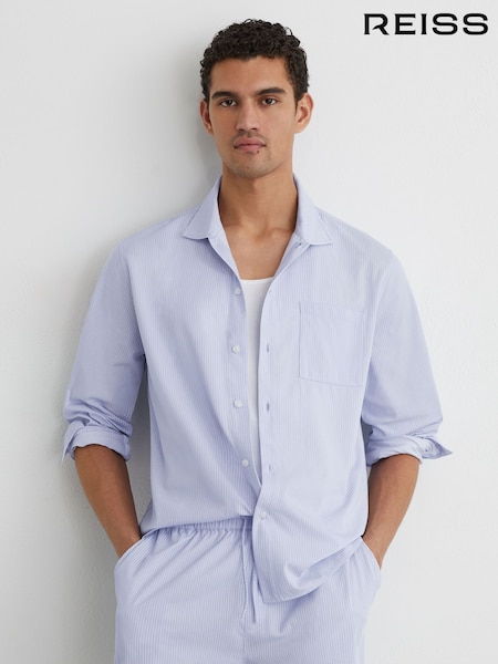 Reiss Soft Blue Corso Pinstripe Regular-Fit Long-Sleeve Shirt With Cotton