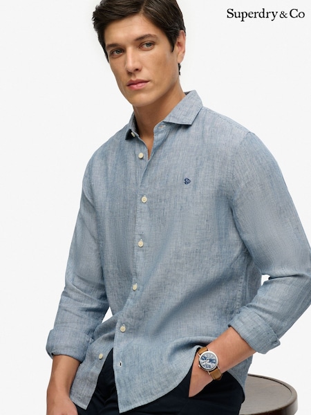 Superdry French Blue Riviera Long Sleeve Linen Shirt