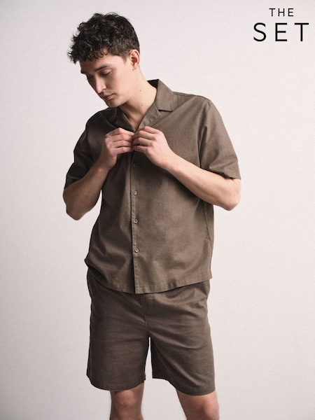 The Set 2 Pack Linen Cotton Relaxed Fit Short Sleeve Shirt Black/Ecru