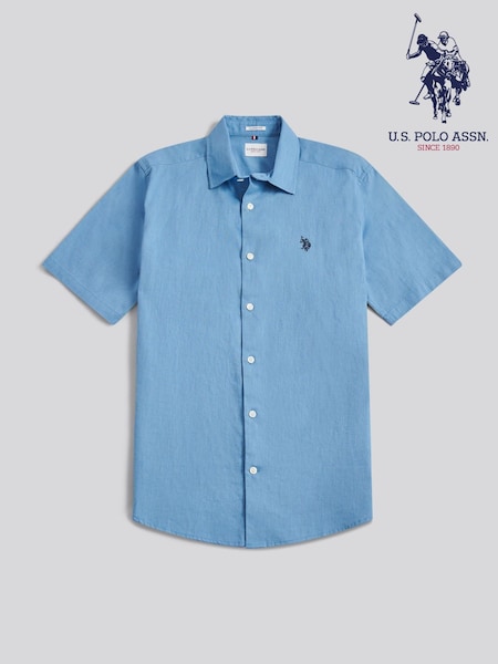 U.S. Polo Assn Blue Linen Blend Short Sleeve Shirt
