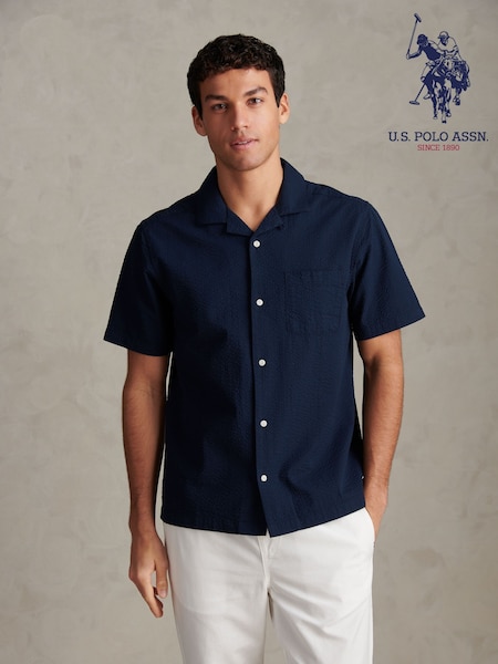 U.S. Polo Assn Blue Seersucker Revere Short Sleeve Shirt