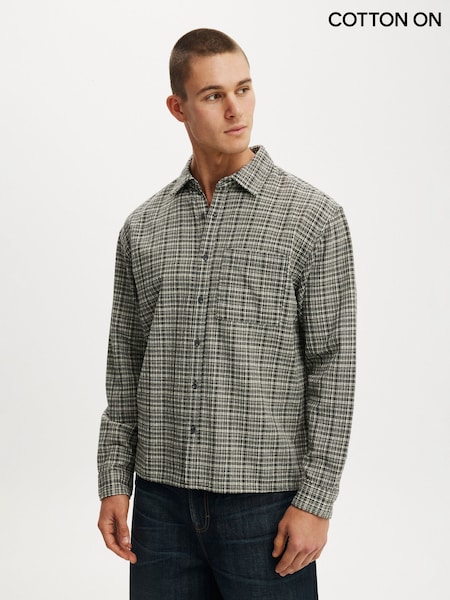 Threadbare Black Check Cotton Long Sleeve Shirt
