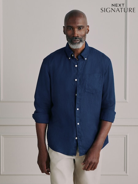 Reiss Soft Blue/White Fine Stripe Ruban Linen Striped Cutaway-Collar Shirt Regular-Fit
