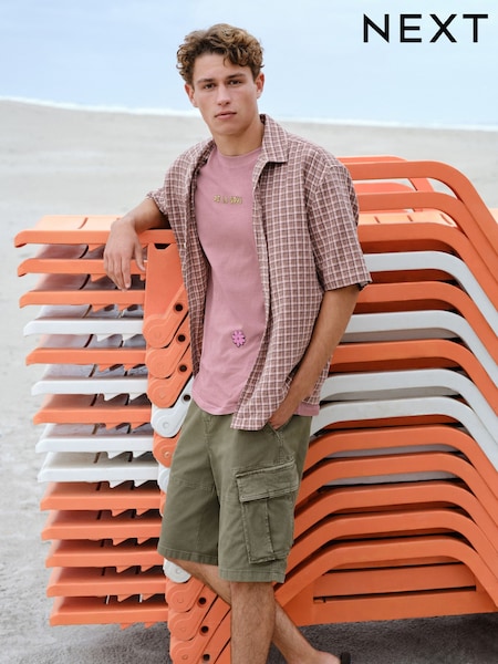 Pink Textured Check Short Sleeve Shirt