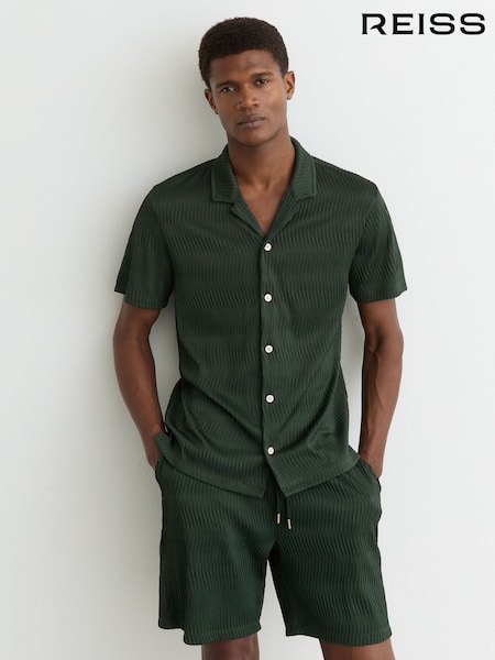 Reiss Emerald Green Aleo Textured-Wave Cuban-Collar Shirt
