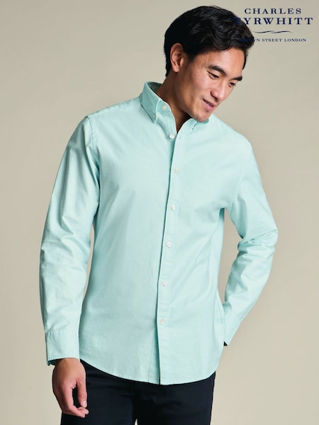 Charles Tyrwhitt Green Stripe Button-Down Stretch Washed Oxford Shirt