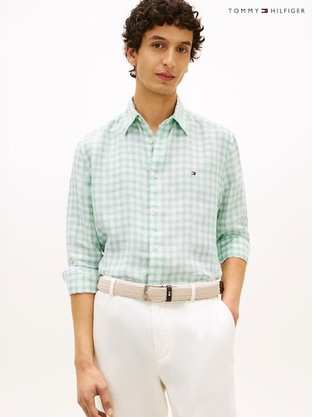 Tommy Hilfiger Green Regular Fit Gingham Check Pure Linen Shirt