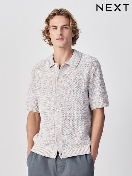 Reiss Silver Knox Textured Raglan Cuban-Collar Shirt