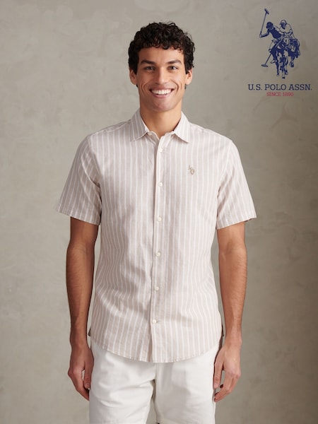 U.S. Polo Assn Natural Linen Blend Summer Stripe Short Sleeve Shirt