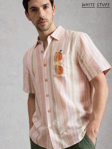 Charles Tyrwhitt Burnt Orange Plain Pure Linen Shorts Sleeve Shirt