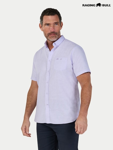 Raging Bull Purple Short Sleeve Classic Linen Shirt