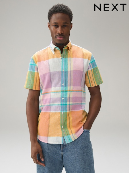 Lilac Purple Short Sleeve Regular Fit Oxford Shirt