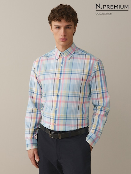 Blue/Multi Colour Regular Fit N. Premium 100% Cotton Smart Check Long Sleeve Shirt
