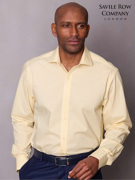 Savile Row Company Yellow Gingham Check Classic Fit Cotton Single Cuff Formal Shirt