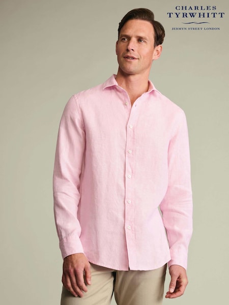 Charles Tyrwhitt Light Pink Plain Pure Linen Shorts Sleeve Shirt