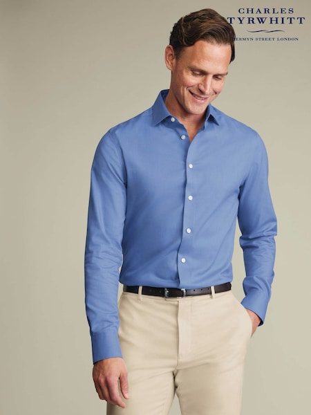 Charles Tyrwhitt Blue Non-Iron Cotton Linen Shirt