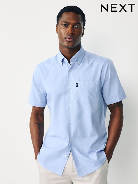 Light Blue Slim Fit Short Sleeve Easy Iron Button Down Oxford Shirt