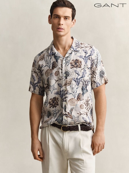 GANT Natural All Over Print Camp Collar Linen Resort Shirt