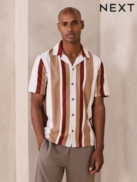 Neutral Brown Regular Fit Stripe Short Sleeve Jersey Shirt